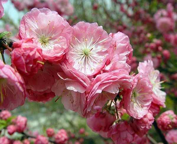 Цветки светло-розовые, махровые, 2—2,5 см в диаметре, одиночные или в парах. Чашелистикияйцевидные или ланцетовидные.